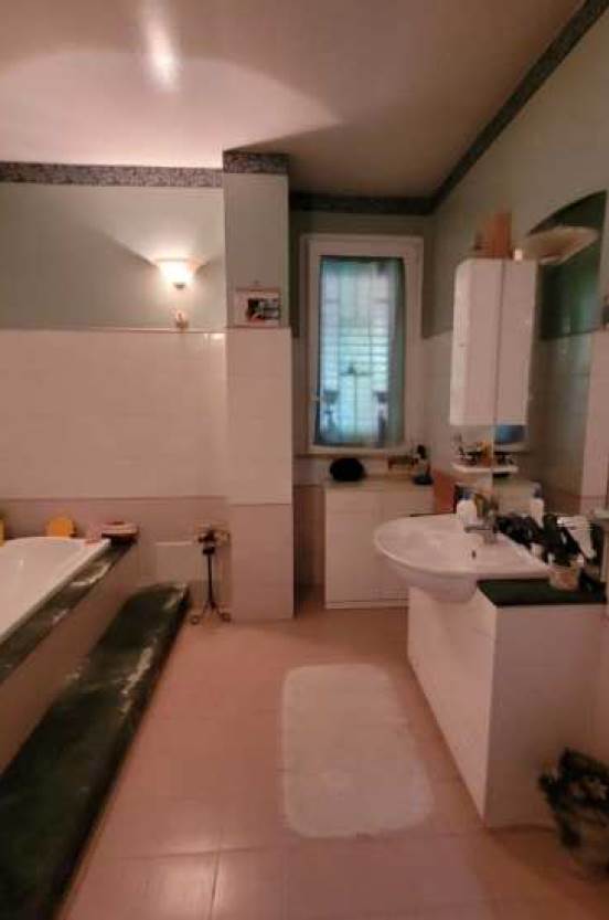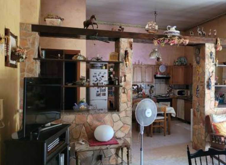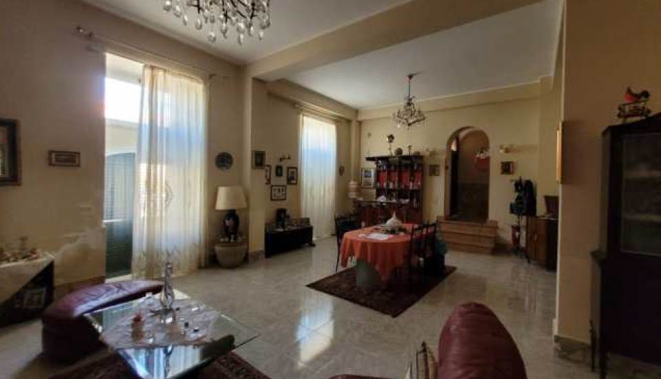 al piano terra, si accede direttamente su un ampio soggiorno (di mq 53,5), collegato con la cucina/sala da pranzo (di ca mq 45), dal quale - servendosi di un disimpegno/corridoio (di mq 4,9) - può accedersi ad un bagno (di mq 8,9), un ripostiglio (di mq 3,35) e, uscendo nel giardino, anche ad un ampio locale deposito (di mq 45,6); al piano primo, invece, si trovano un disimpegno (di mq 9,95), le tre camere da letto (rispettivamente di mq 15,4, 13 e 19,55), un secondo bagno, un altro ripostiglio, e la spaziosa veranda coperta (di mq 38,6) e lastrico solare (di mq 44,6).